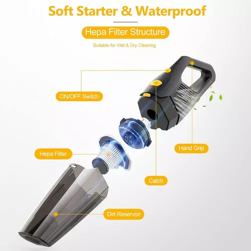 * Alta potencia de 7 kpa: Nuestra aspiradora de coche tiene una alta potencia con 7000 PA.