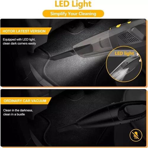 * Luz LED notable: Mini aspiradora con una luz LED superbrillante, ideal para interiores de coche, y asegura tu trabajo tanto en brillo como en la oscuridad.