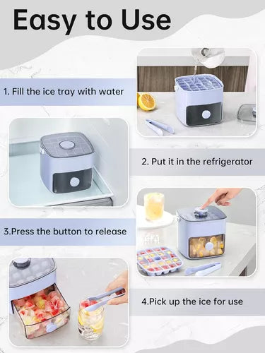 * Fácil de Liberar: Esta hielos molde con una prensa y liberación de cubitos de hielo rápidamente. Simplemente coloque la bandeja de cubitos de hielo boca abajo en el cubo de hielo, cierre la tapa, presione el centro de la tapa con ambas manos y obtenga 24 cubitos de hielo inmediatamente.