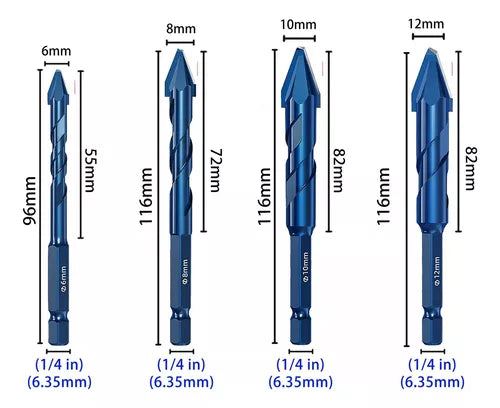 * Mango hexagonal estándar: El diseño del mango hexagonal estándar asegura un agarre firme sin aflojarse, evitando eficazmente que la broca se resbale.