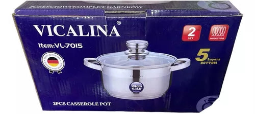 OLLA DE ACERO INOXIDABLE CON TAPA DE VIDRIO CAPACIDAD 6,3 LITROS 24 CM VICALINA VL-7015