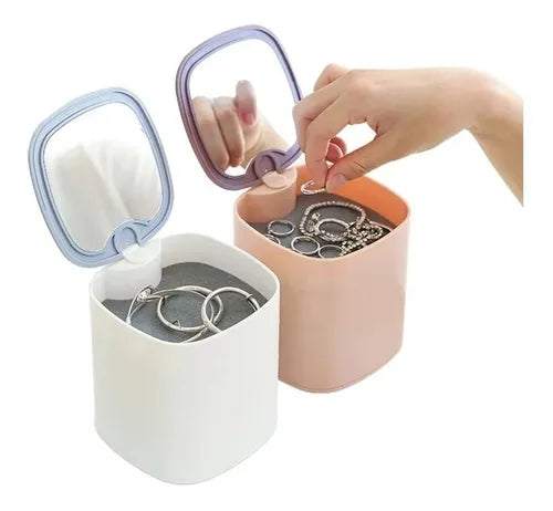 No es demasiado grande, lo que permite llevar este joyero con usted. Puede guardarlo en su equipaje para unas vacaciones o un viaje de negocios. Se ve bonito en tocadores y estantes. Además, tiene un diseño de rotación para un fácil acceso, buscando el tesoro más ventajoso en segundos.