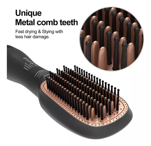 * Mango ergonómico: El mango de diseño ergonómico hace que sea cómodo sujetar el cepillo durante períodos prolongados. Esto proporciona una mejor experiencia de peinado sin tensión en las manos.