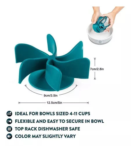 * No incluye la pailita. Para obtener mejores resultados: 1. Limpie el plato de comida para perros o el cuenco de comida. 2. Enjuague el interior de la ventosa en el cuenco del perro de alimentador lento inserte bajo agua tibia y sacuda todo el exceso de agua. 3. Presione la ventosa firmemente en su lugar en la base de su plato de perro limpio, asegurándose de que no haya burbujas de aire.