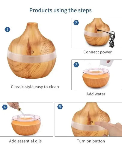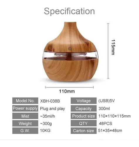 Humidificador de aire de 300 ml LED con Aroma Difusor de aceite esencial Humidificador ultrasónico de grano de madera Mini atomizador USB Purificador Luz nocturna