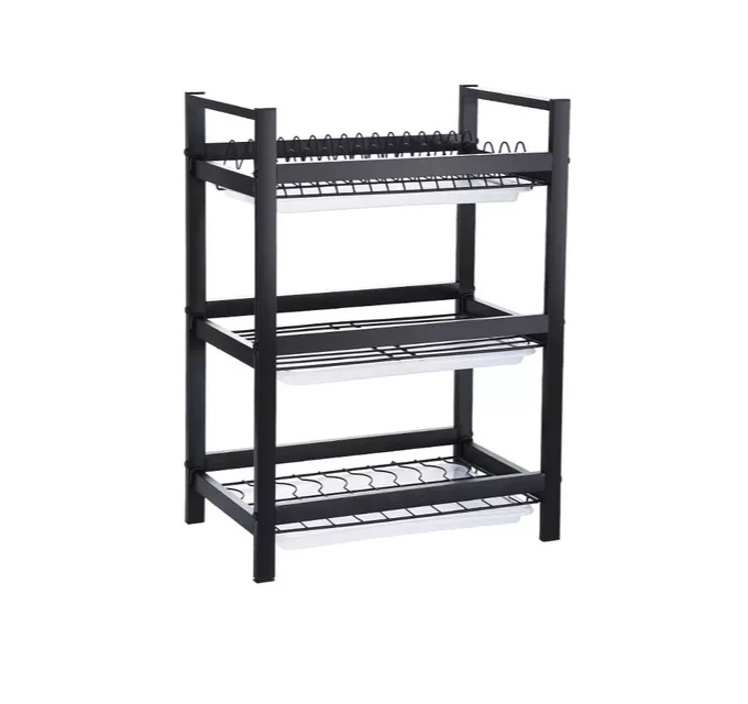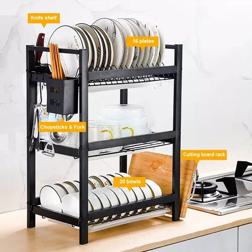 ESCURRIDOR SECADOR DE LOZA PLATOS BANDEJA DE DRENAJE CON CUBIERTERO DE METAL 3 NIVELES