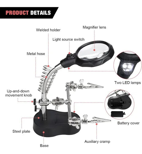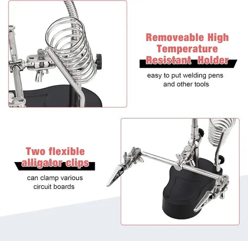 * HERRAMIENTAS PRÁCTICAS: Ya sea que esté ensamblando componentes electrónicos, microsoldando o haciendo otro trabajo de detalle, el soporte para soldador, la tercera mano, la luz de aumento y el husillo de soldadura lo ayudarán a completar la tarea. Perfecto para todas sus necesidades de soldadura, desde reparaciones básicas hasta proyectos de bricolaje de precisión.