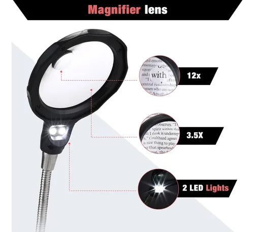 Estación de lupa: la lupa auxiliar de 3,5X es perfecta para soldar, construir modelos, reparaciones electrónicas, proyectos de bricolaje, joyería, pasatiempos y manualidades, y la lente auxiliar de 12X agrega un zoom adicional cuando necesita ver detalles más intrincados.