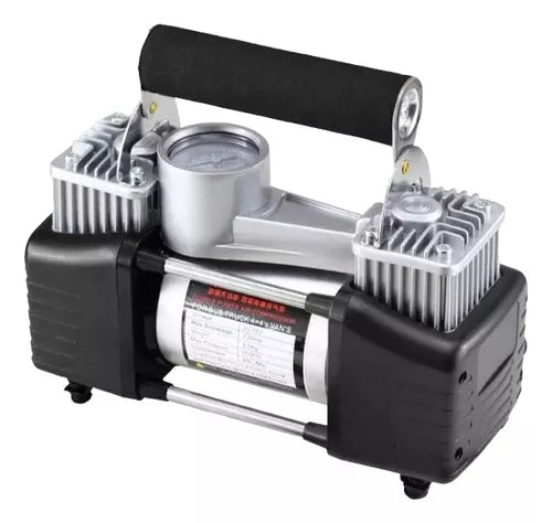 Inflador Compresor De Aire2 Cilindros Auto Bicicleta Camión Color Negro Con Plateado