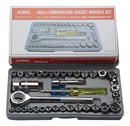 * Juego de llaves de 40 piezas, caja de herramientas combinada para reparación de motocicletas y automóviles