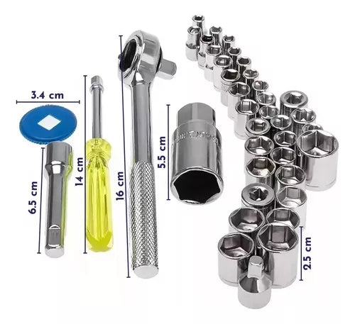 JUEGO DE DADOS + RACHET CHICHARRA REVERSIBLE SET DE HERRAMIENTAS DE 40 PIEZAS