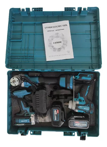 Este kit de herramientas eléctricas te ofrece un taladro, esmeril y llave de impacto 3 en 1, ahorrándote espacio y dinero. Con sus múltiples funciones, podrás realizar una variedad de tareas de manera eficiente y precisa. Ideal para profesionales o aficionados a la construcción y reparación. ¡Aprovecha al máximo tu tiempo con este kit 3 en 1!