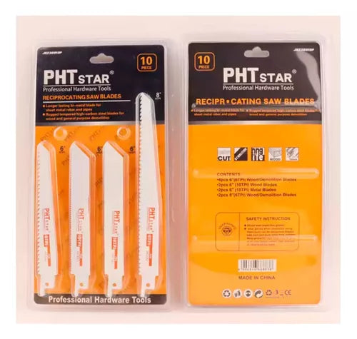 JUEGO DE HOJAS PARA SIERRA RECÍPROCA METAL/MADERA 10 PIEZAS PHT STAR