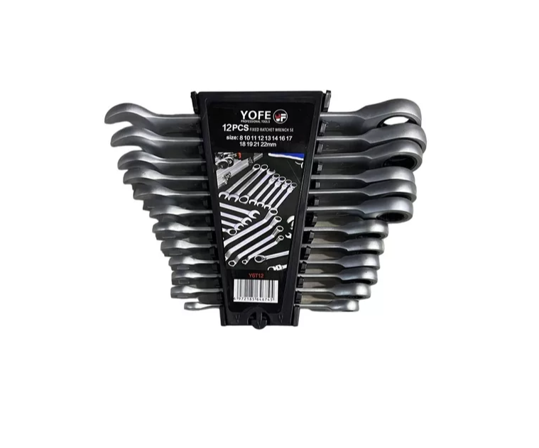 JUEGO DE LLAVES PUNTA CORONA CON CHICHARRA RACHET 12 PIEZAS MARCA YOFE
