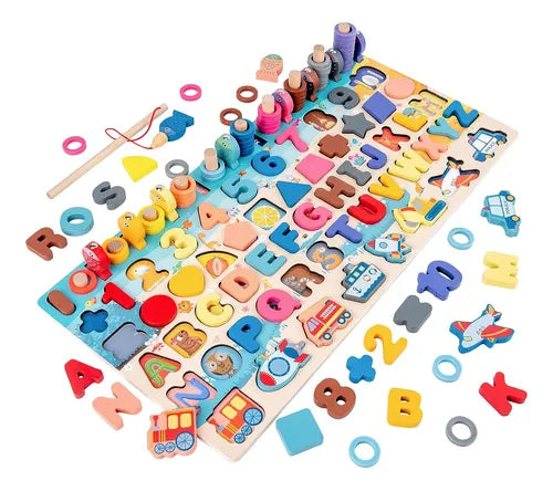 JUEGO DE MESA EDUCATIVO DIDÁCTICO PARA NIÑOS MONTESSORI NÚMEROS FIGURAS LETRAS 135 PIEZAS