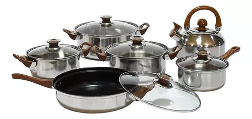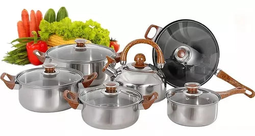 Juego De Ollas Batería De Cocina De Acero Inoxidable 12 Pcs