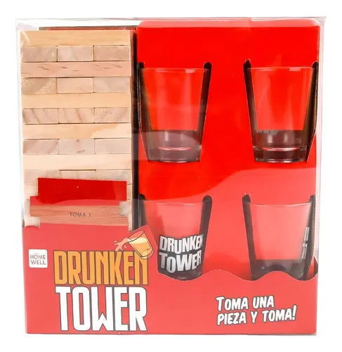Juego Jenga Trago Drunken Tower + 4 Vasos Shots Mesa Ingles