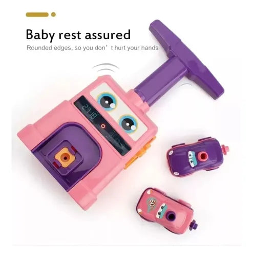 * Presione la palanca de contracción del juguete para proporcionar aire al coche. Instale pequeños globos en el coche. Mantenga presionado la palanca de contracción para hacer el globo más grande y más grande.