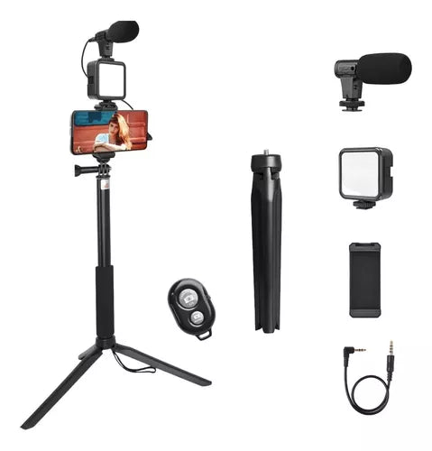 Kit Vlogging Tripode Selfie Luz Led Control Remoto Sporte