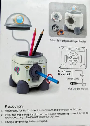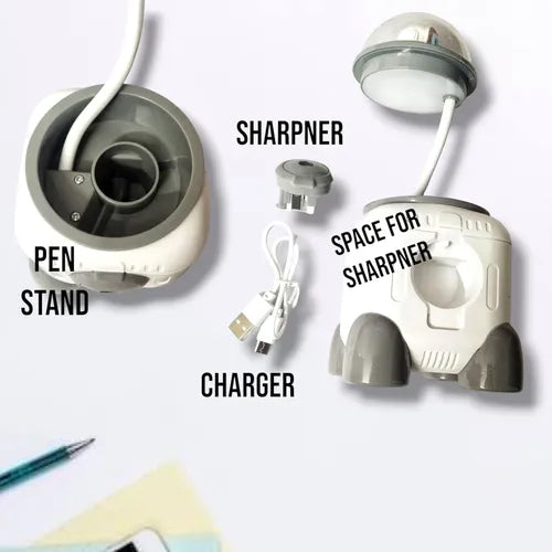MINI LÁMPARA DE ESCRITORIO ASTRNAUTA LUZ LED 3 NIVELES SACAPUNTAS Y PORTALAPICES IRM-12996
