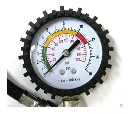 El Manómetro Medidor De Presión Neumáticos Auto Moto Bicicleta de la marca Air Pressure Gauge es un aliado indispensable para mantener la presión correcta de tus neumáticos. Con una capacidad máxima de 220 psi, este modelo profesional te permitirá medir con precisión y facilidad la presión de tus neumáticos, ya sea de tu auto, moto o bicicleta. Su diseño compacto y resistente lo hace fácil de transportar y usar en cualquier lugar. Mantén tus neumáticos en óptimas condiciones y mejora la eficiencia de tu vehículo con este manómetro de alta calidad.