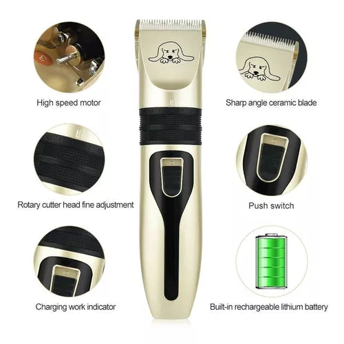 Maquina silenciosa y recargable para trabajar el pelo de las mascotas, sin cables, manteniéndolas siempre en buenas condiciones. Es muy útil tanto en el hogar como en el salón para uso profesional, te garantiza un corte seguro, un cabello limpio y ordenado.