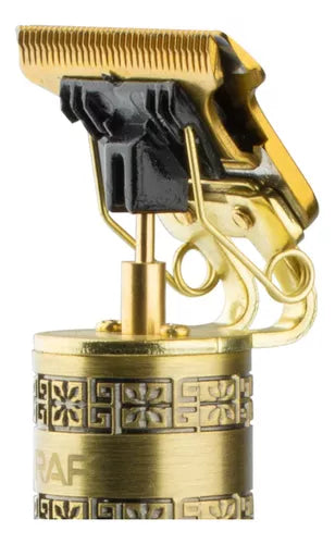 * Cuchillas de titanio y una batería de iones de litio de 18.500, esta máquina de acabado garantiza cortes consistentes y precisos. Su material metálico de color dorado proporciona durabilidad y resistencia al dispositivo.