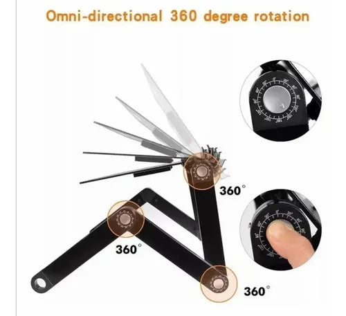 -Junta giratoria de 360°: este soporte de regazo está diseñado con control completo y flexibilidad para mayor comodidad. Simplemente presiona y mantén pulsado el botón de ajuste y gira al ángulo que desees, luego suelta para bloquear. Las tres patas plegables se pueden ajustar en múltiples ángulos, lo que te permite estudiar o trabajar en la postura más cómoda en casa.