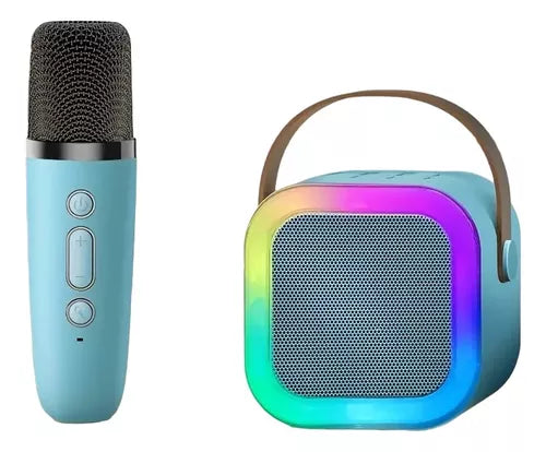 MINI ALTAVOZ PARLANTE + MICRÓFONO KARAOKE INALÁMBRICO BLUETOOTH LUCES RGB