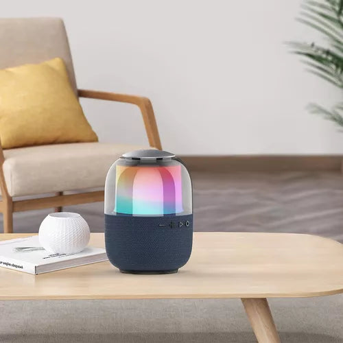 Altavoz Parlante Bluetooth con Potencia de salida: 8W, altavoz de luces nocturnas con espectáculo de luz impulsado por el ritmo, emparejamiento estéreo inalámbrico verdadero, tarjeta auxiliar, TF, 24 horas de tiempo de reproducción, graves intensos para fiesta hogar, lámpara de regalo de decoración. Espectáculo de luces de 360 "con esmalte translúcido y cavidad de luz de 360" de alta resolución, solo use su dedo para personalizar sus diferentes temas de color, los parlantes domésticos le brindan un espectáculo de luces pulsantes preciso y receptivo, baile al ritmo de la música. Calidad de sonido envolvente y función TWS admite el emparejamiento de 2 altavoces al mismo tiempo, lo que le permite experimentar un festín auditivo inmersivo.