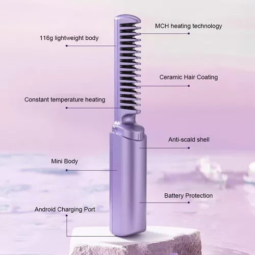 MINI PEINE ALISADOR DE CABELLO INALÁMBRICO PORTÁTIL RECARGABLE
