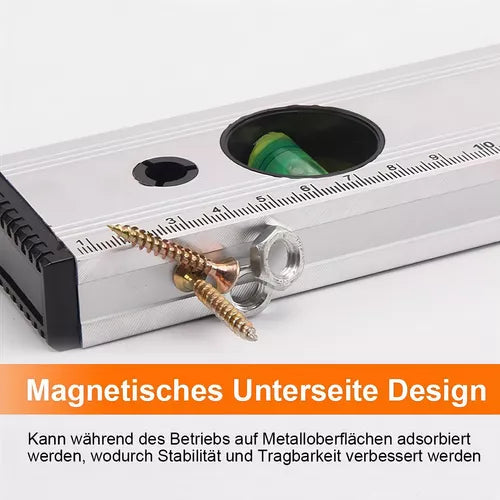 Este nivel magnético cuenta con tres burbujas de medición que permiten determinar ángulos de 45°, 0° y 90°, lo que lo hace extremadamente versátil para cualquier proyecto. Además, su función magnética facilita su uso en superficies metálicas, permitiendo un trabajo más eficiente y preciso.
