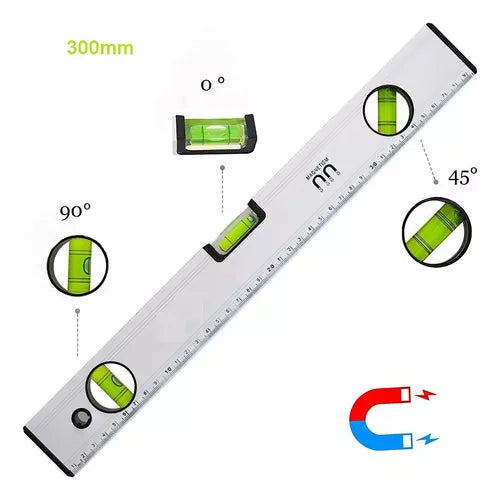 En resumen, el Nivel de 3 Burbujas de Aluminio Magnético + Regla de Medición 300mm es una herramienta indispensable que combina funcionalidad, durabilidad y precisión.