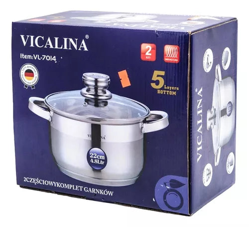 OLLA DE ACERO INOXIDABLE CON TAPA DE VIDRIO CAPACIDAD 4,8 LITROS 2 CM VICALINA VL-7014