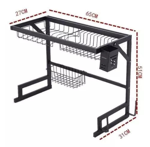Estante Seca Platos Multifunción Con Acero Inoxidable Negro
