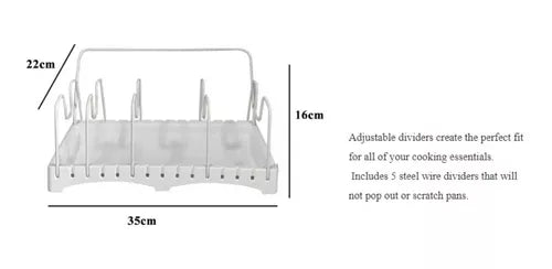 Los divisores ajustables crean el tamaño perfecto para todos sus elementos básicos de cocina. Incluye 5 divisores de acero para que no se rayen las cacerolas.