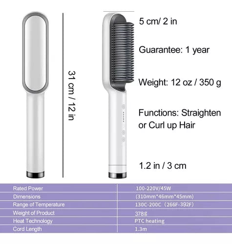 Peine alisador para diferentes peinados - 200° C diseño multifuncional. Con este producto puedes conseguir un cabello liso, ligeramente rizado o rizado, lo que significa que puedes disfrutar de diferentes opciones de peinado en casa en lugar de ir al salón. tecnología cerámica. La tecnología cerámica reduce el encrespamiento y la estática para crear peinados sedosos y brillantes en un instante. También asegurará que tu cabello se mantenga saludable cuando se exponga al calor durante el peinado. Temperatura regulable Su temperatura de calentamiento se puede regular de 130°C a 200°C. Las diferentes temperaturas de calentamiento están diseñadas para diferentes niveles de calidad del cabello. Línea giratoria de 360 grados. El cable giratorio de 360 grados te permite peinar tu cabello desde cualquier ángulo, evita enredos y te hace sentir más cómodo usando esta plancha.