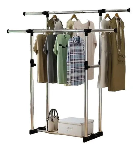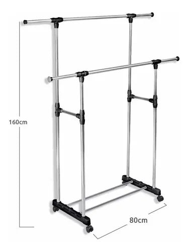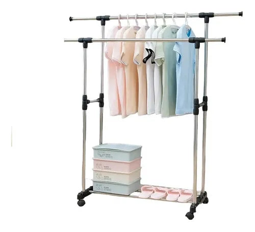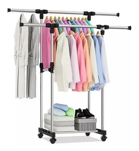 Perchero Colgador Doble De Metal Exhibidor De Ropa Con Rueda