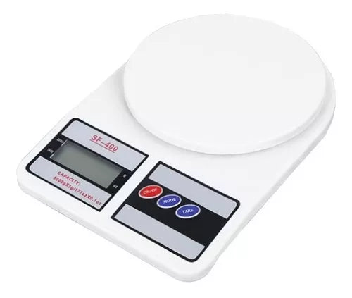 Pesa digital liviana, practica y portátil. Pesa desde 01 gramos hasta 10 kilos o 10.000 gramos. También pesa en onzas. Utiliza dos pilas AA para su funcionamiento (Incluidas)