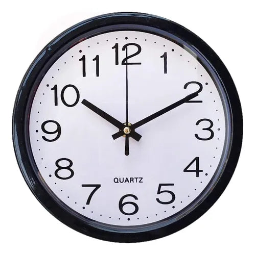* Reloj de pared pequeño redondo simple, marco de plástico de alta calidad, puntero de metal, esfera de reloj de PVC.