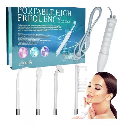 Dispositivo portátil de alta frecuencia, instrumento de electroterapia, antiarrugas, bactericida, antiinflamatorio, antiacné, reductor de puntos y más. Utiliza alta frecuencia y vibración para generar efectos de calor, rayos ultravioleta y corriente para tratar la piel.