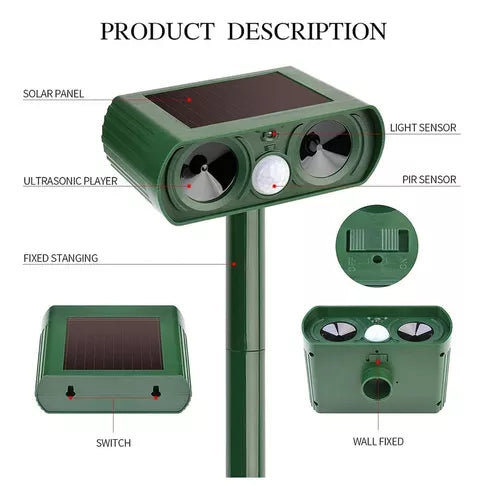 Repelente De Animales Solar Ahuyentador Jardín Ultrasónico Color Verde Oscuro