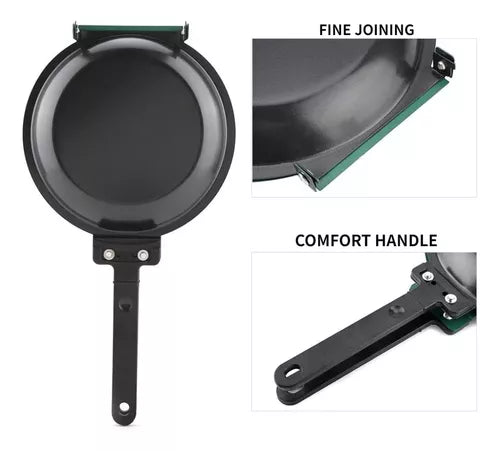 Descubre la comodidad y eficiencia de nuestra SARTÉN DOBLE ANTIADHERENTE, diseñada específicamente para facilitar la preparación de panqueques, tortillas, huevos fritos y más. Con su diseño innovador y materiales de alta calidad, esta sartén asegura durabilidad, seguridad y una cocción sin complicaciones.