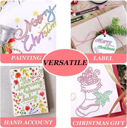 Estos increíbles rotuladores auto delineados escriben en plata metálica viva rodeada de bordes de colores. Produce contornos para que puedas crear automáticamente un hermoso efecto de doble color.