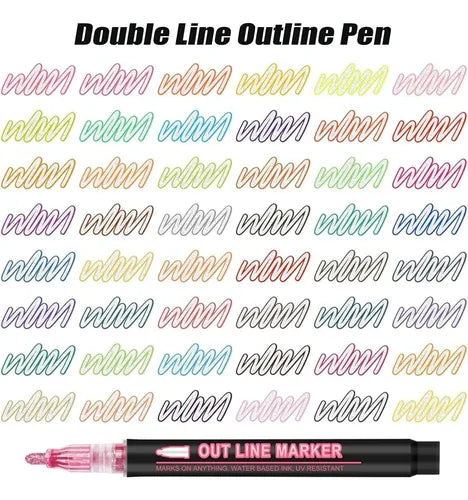 SET DE 24 MARCADORES MÁGICOS DOBLE LINEA METALIZADOS TINTA GEL OUTLINEPEN