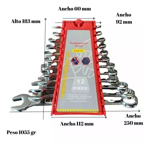 SET DE LLAVES COMBINADAS JUEGO DE 12 PIEZAS MM XIAN YU CON ESTUCHE