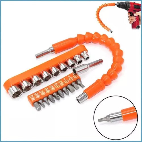 FUNCIÓN: Se puede conectar a un taladro eléctrico, un taladro de carga o una llave manual, permitiendo alcanzar espacios estrechos y girar tornillos.