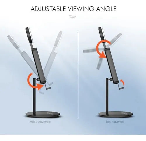 Visualización del dispositivo manos libres La luz para selfies se pliega perfectamente dentro del soporte cuando no está en uso Equipado con una varilla de aleación de aluminio que hace que el centro de gravedad sea más bajo Coloque el dispositivo en posición vertical u horizontal para obtener el ángulo perfecto Soporte para teléfono ajustable Obtenga el ángulo de visión perfecto Diseñado con un puerto de carga reservado Cargue su teléfono cuando use este soporte Este soporte para teléfono celular es compatible con todos los teléfonos inteligentes de 4-8 pulgadas en fundas de teléfonos, como todos los modelos de iPhone, Samsung Galaxy S / Note Series, Moto, LG, Google Pixel, Nexus y etc. Funciona con pila de botón de litio incluida