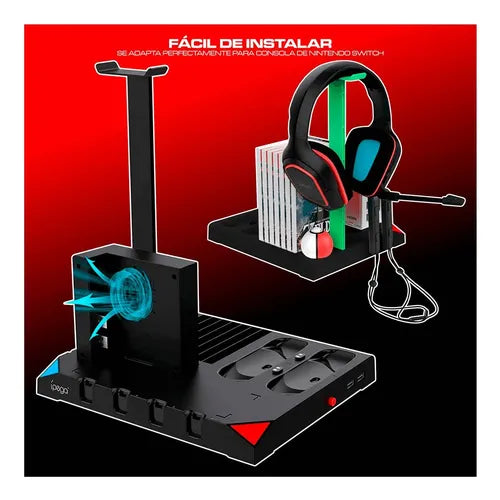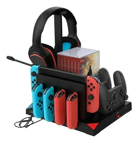 SOPORTE PORTA JUEGOS BASE CARGADOR VERTICAL PARA NINTENDO SWICTH 9 EN 1
