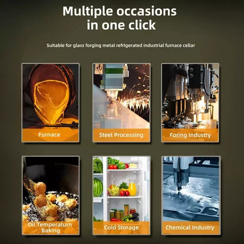 * Amplias aplicaciones: Diseño de termómetro industrial, no puede medir la temperatura corporal de animales, adultos y niños. Puede usarse ampliamente en varias industrias para medir altas temperaturas en la superficie del objeto. Aplicable a la fabricación de maquinaria, cocción de cerámica, industria ligera, oro, industria automotriz, cocción de alimentos, medición de temperatura del molde, medición de temperatura del agua doméstica y temperatura del aceite, etc.